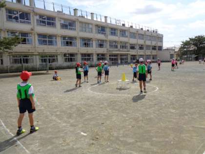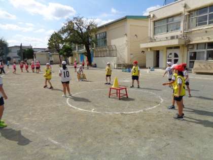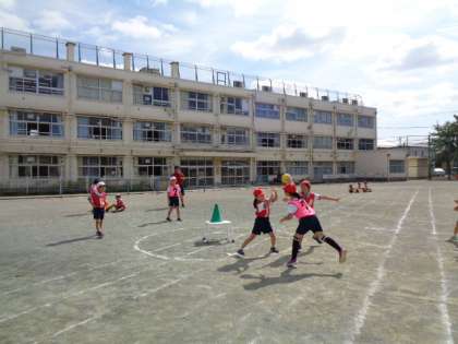 「ボールシュートゲーム」の学習です。作戦を立てて、的にボールを当てると得点です。