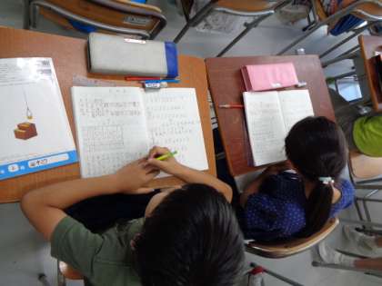 算数少人数の学習です。「大きな数」1000の位の構成を考えます。ノートに丁寧にまとめることもできました。