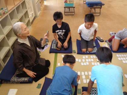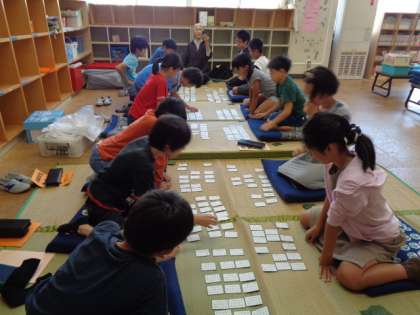 ゲストティーチャーを招いて、「百人一首」にチャレンジしました。たくさんとれるかな。