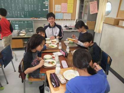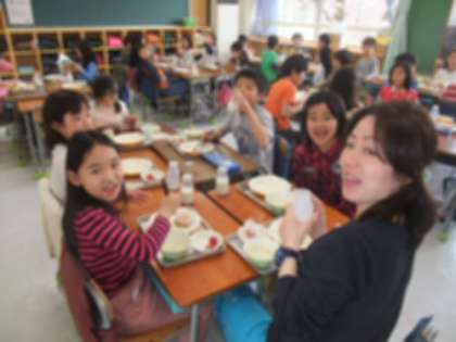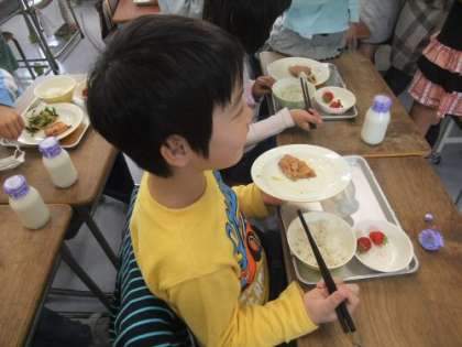 12日(火)からです。新しい友だちと楽しそうに食べていました。