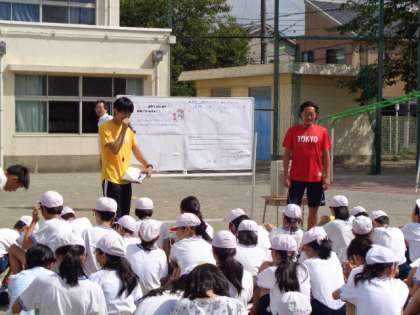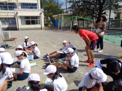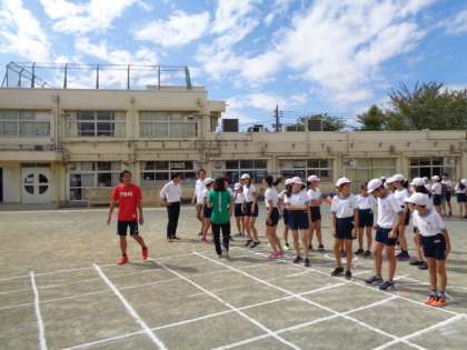 オリンピアンの方に50mを走っていただき、自分のタイムと比べて同時にゴールするためにはどうしたらよいか考えました。