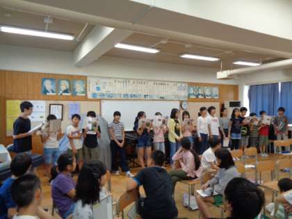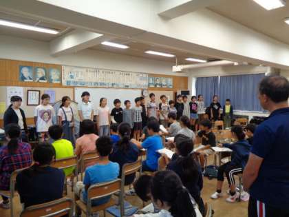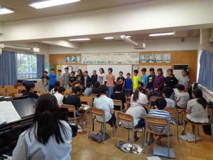 「豊かな声で合唱しよう」パートごとに練習し、お互いの声を聴き合いました。自分たちの合唱に生かせるようにします。