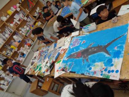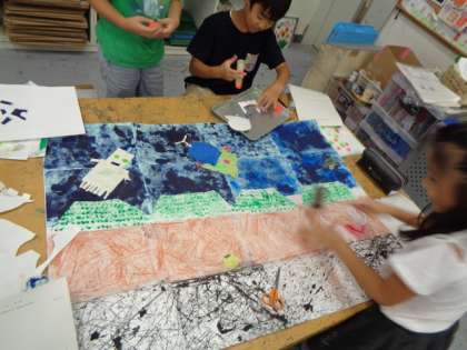 「絵の具の色や表情を楽しもう」グループで工夫して作品を作りました。