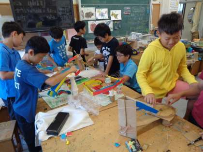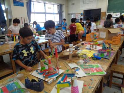 『色や形を工夫しよう』出来上がった作品で友達と楽しく遊びました。
