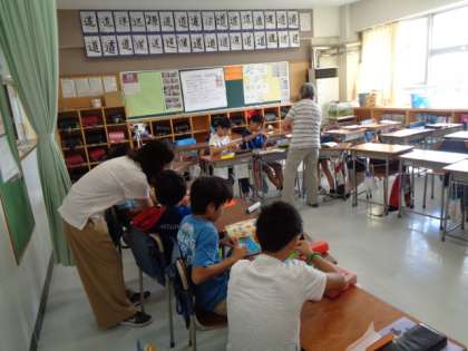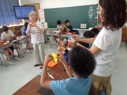 ゲストティーチャーを招いて、折り紙の体験を行いました。上手に折れるかな。