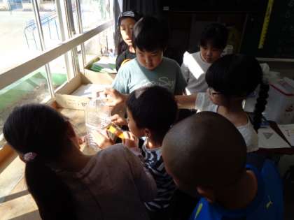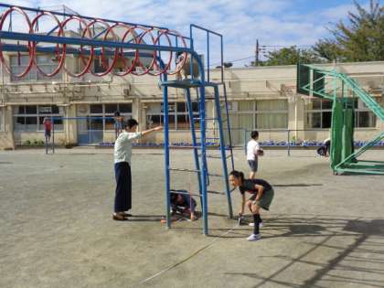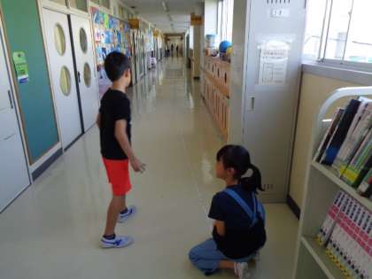 巻き尺を使っていいろいろな長さをはかる学習です。廊下は50mよりも長いことがわかりました。