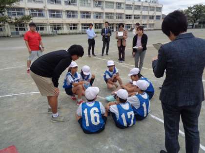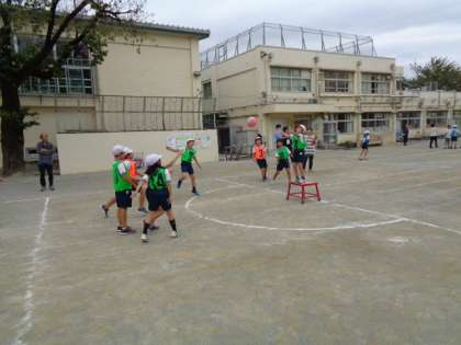 体育「ポートボール」の授業をもとに弦巻小学校の校内研究を行いました。4年1組の子どもたちが大活躍でした。