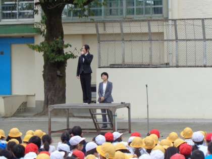 最後のあいさつに実習生が来ました。2週間の経験をいかして、引き続き大学で学ぶとのことです。