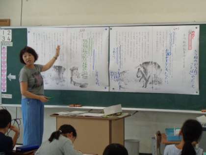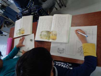 「きつねのおきゃくさま」のお話で登場人物の気持ちになって考えます。