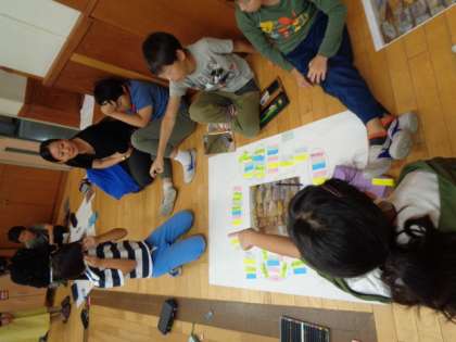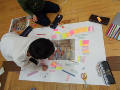世田谷美術館をゲストティーチャーにお招きして、図版鑑賞の後、グループワークで考えをまとめ発表しました。