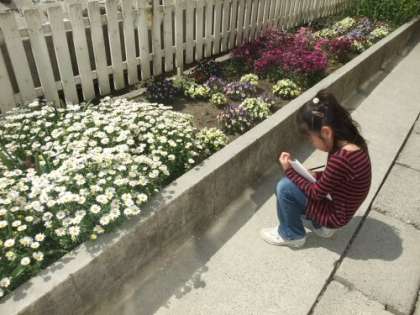 20分休みのときに、2年生の女の子が花のスケッチを