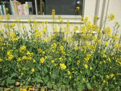 今、校舎は、黄色い菜の花で囲まれています。