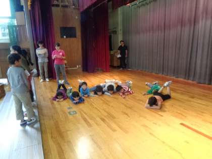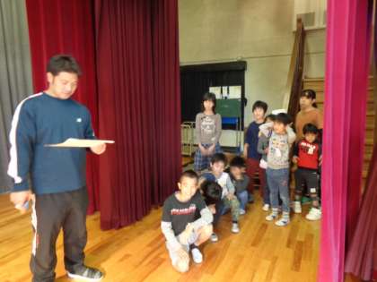 実際に舞台に立って練習しました。なかなか難しい動きがあります。