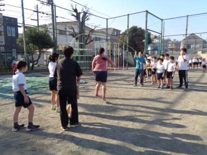 雨で延期になった「長なわ」の体育朝会です。各クラス最高記録が出たでしょうか。
