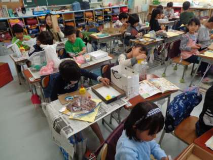 工夫して、どんぐりを使ったおもちゃを作成しています。
