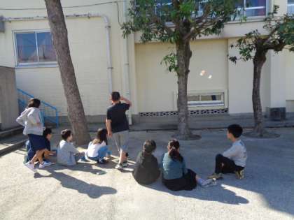 「光で遊ぼう」鏡を使って実験をしました。天候がよく絶好の体験日和でした。鏡に工夫を加えて遊びました。