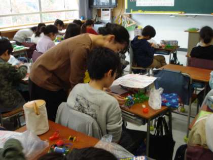 3年生の時に勉強した棒磁石との違いや共通点を、実験をしながらみつけていました。