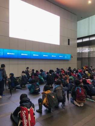 日本科学未来館に到着しました。外は大雨です。