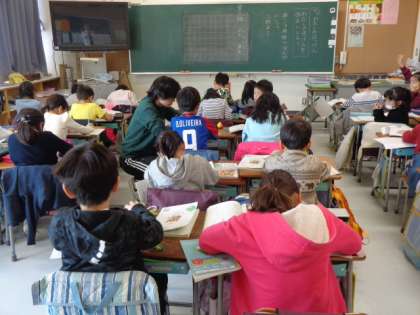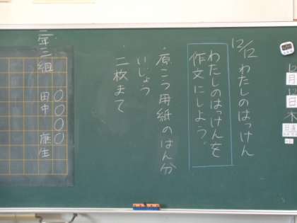 「わたしのはっけん」作文の授業です。思い思いの発見を文章にまとめられるように集中して書いていました。