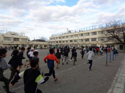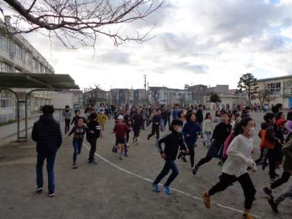 ずいぶん冷え込んだ朝でしたが、元気に自分のペースで5分間走り切りました。体が温かくなった子もいました。