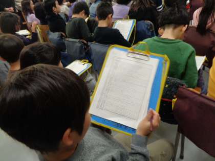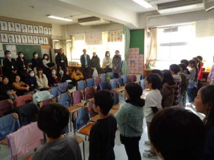 10歳になって、20歳まで2分の1になりました。今までの成長を振り返り、これからの自分を考えます。友達がどんなことを考えているのかにも触れ、最後はみんなで合唱しました。学校公開期間でたくさんの保護者の方に参観していただきました。