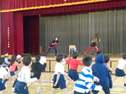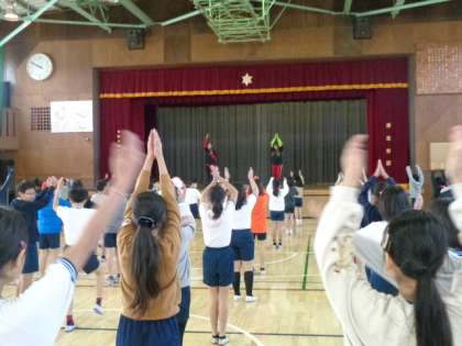 ゲストティーチャーを招いて、ダンスの学習をしました。来週までの宿題も出ました。一週間、練習頑張りましょう。