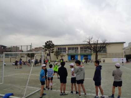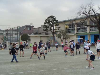 5,6年生対抗でドッジボール、サッカー、バスケットボールの球技を楽しみました。一回り体の大きい6年生に5年生が挑みました。