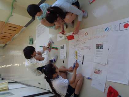 自分たちで選んだ国について調べ、新聞にまとめています。