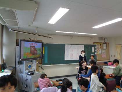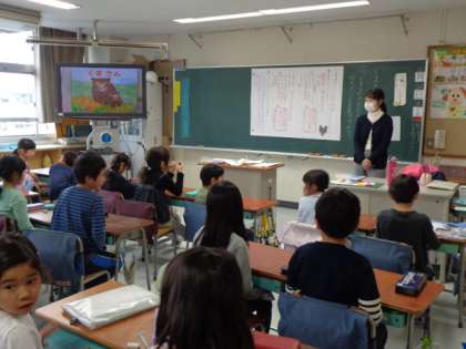 詩の学習です。音読したり、くまさんの心情を読み取ったりしました。最後に絵本の読み聞かせをしました。