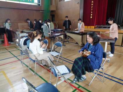 子ども達には内緒で練習して、サプライズを仕掛けようと企みました。音楽な苦手な職員には得意な職員が教えました。自主練にも励み当日に臨みました。少しでもおもいが卒業生に届くと嬉しいです。