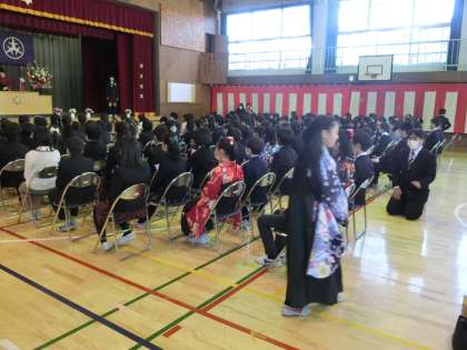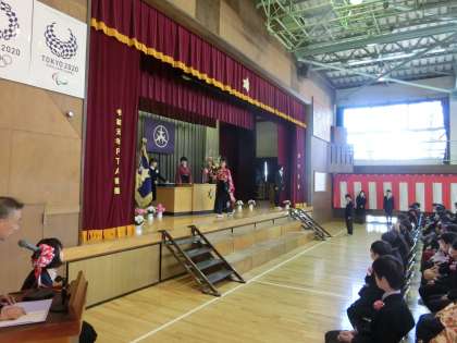 ぶっつけ本番の証書授与になりました。教員のガイドや床面のテープを頼りに子ども達は頑張りました。緊張した面持ちでとてもかわいい一面を見せてくれました。