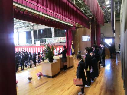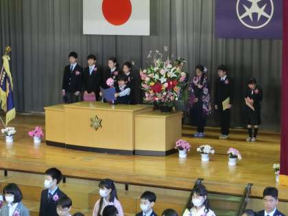 「児童代表の言葉」で思い出や中学校へ向けて、感謝の気持ちを各クラスの代表が話しました。落ち着いた様子でとても頼もしかったです。