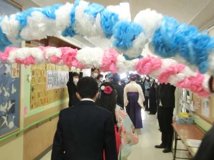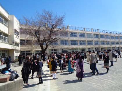 穏やか日差しの中、無事に令和元年度卒業式が終わりました。最後の別れを惜しむかのようにいつまで校庭で記念撮影が行われていました。