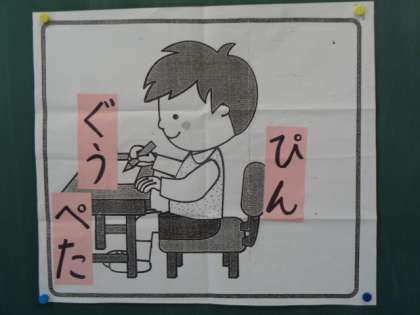 おなかとせなかに ぐう ひとつ(握りこぶしが入るようにゆとりを持ってこしかけましょう)
