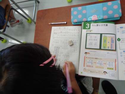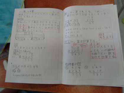 3桁+3桁の計算の仕方をひっ算を使って考えました。どんなことに注意して計算をしなくてはならないかを考えました。繰上りが2度も出てくる計算にもチャレンジしました。ノートにわかりやすく書く工夫もできました。