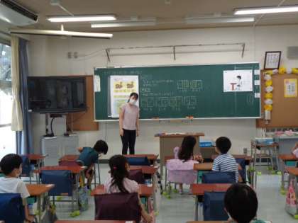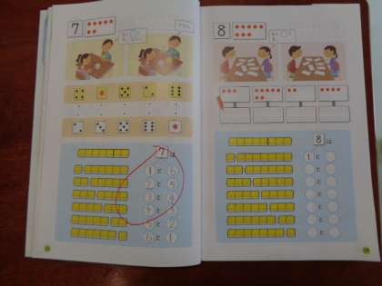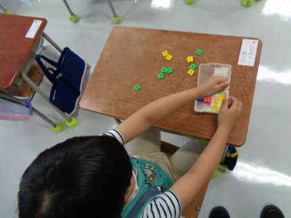 7はいくつといくつにわけられるかな。おはじきを使って調べました。姿勢も正しく一生懸命に学習していました。