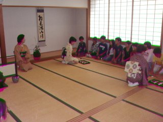 子どもたちは、神妙な顔で、茶道の体験に取り組んでいました。