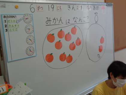 2年生は「たし算」にもチャレンジしました。具体物を1対1対応させる学習はとっても大切です。