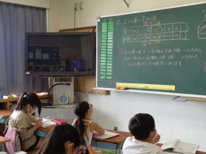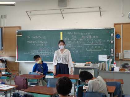 直方体の高さと体積の関係から、『比例』の意味を理解する学習でした。高さを2倍、3倍・・・すると体積も2倍、3倍・・・になるので体積は高さに比例する。数学にもつながる考え方です。しっかり学べたかな。