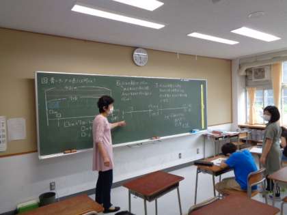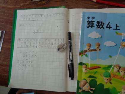 何倍かを□を使ったかけ算の式に表わして、わり算で□を求めます。文章を式に表わすのが難しいところです。