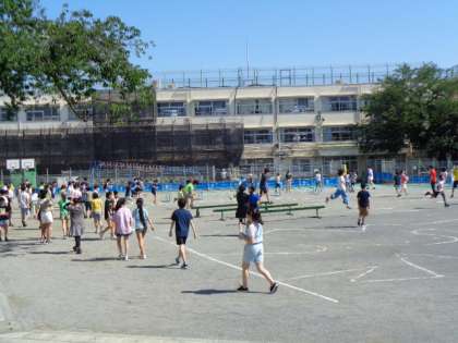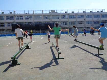 6年生が「弦巻ランド」にチャレンジしました。「作るのは簡単かもしれないけれど、やるのはなかなか難しいですよ。」と、6年生男子