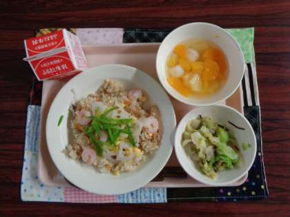 ちらしずし きゃべつの塩昆布かけ フルーツ白玉 牛乳