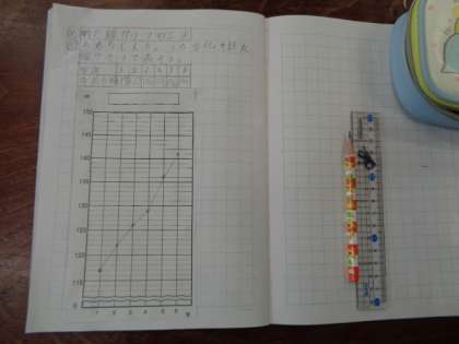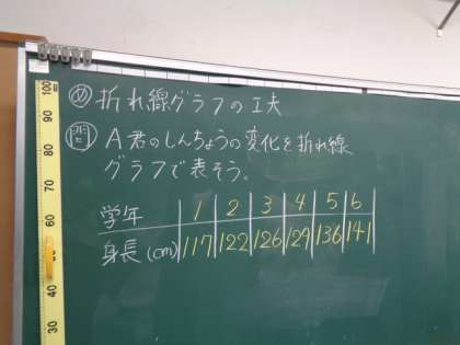 身長の伸び方の表から、折れ線グラフに変化の様子がわかるように表しました。