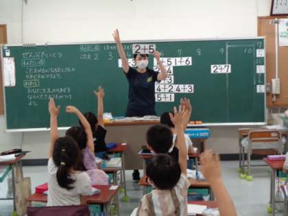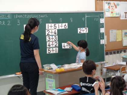 たし算の計算の練習をカードを使って行いました。1年生も、もう計算ができるようになってきました。