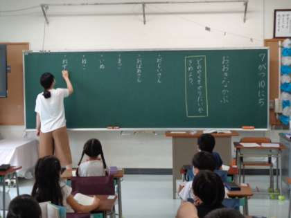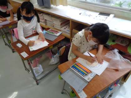 登場人物になりきって、音読します。気分を盛り上げるようにお面も作りました。