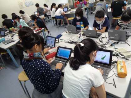 PC室でインターネット使ってひとりひとり世界遺産を調べて、プレゼンテーションソフトにまとめました。わかりやすく発表できるように様々な工夫をしていました。