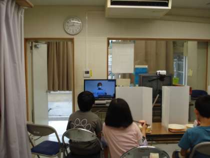 どのクラスも、教室のテレビでよく話を聞いていました。