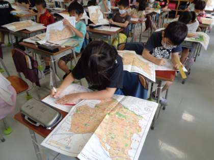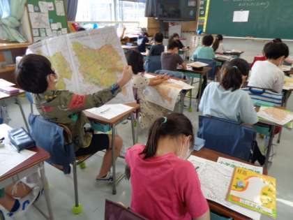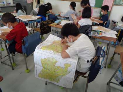 世田谷区の地図を使って調べ学習をしました。地図からわかることはないか一生懸命に探しました。