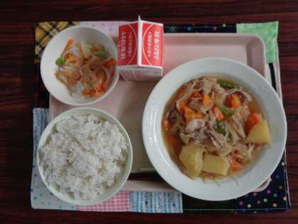 ごはん 肉じゃが ビーンズサラダ 牛乳