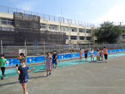 梅雨空が続いていますが、太陽が顔を出しました。貴重な晴れ間に遮光板を使って、太陽の観察をしました。「それでも、眩しい!」緑色に見える太陽をじっくり見ました。